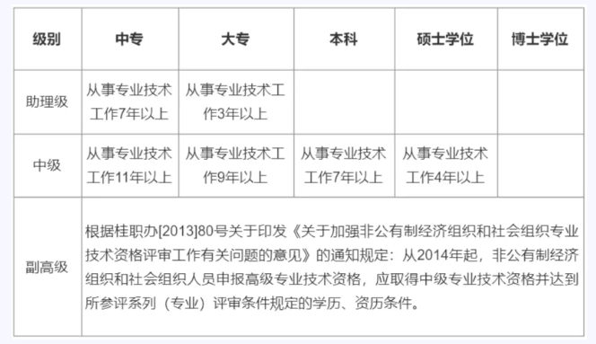 以上表格补充一点:按照有关文件规定,评初级、中级、副高级职称,2026年以前对下一职称不做这系列要求。若自治区职称制度改革文件对学历、资历条件有新规定,以新规定为准。